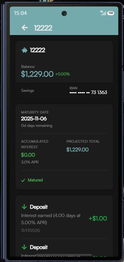 Managing Savings accounts: Support for savings accounts with maturity dates and interest information