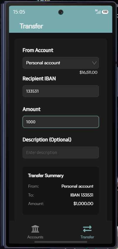 Account Details: View detailed account information including IBAN, balance, and account type